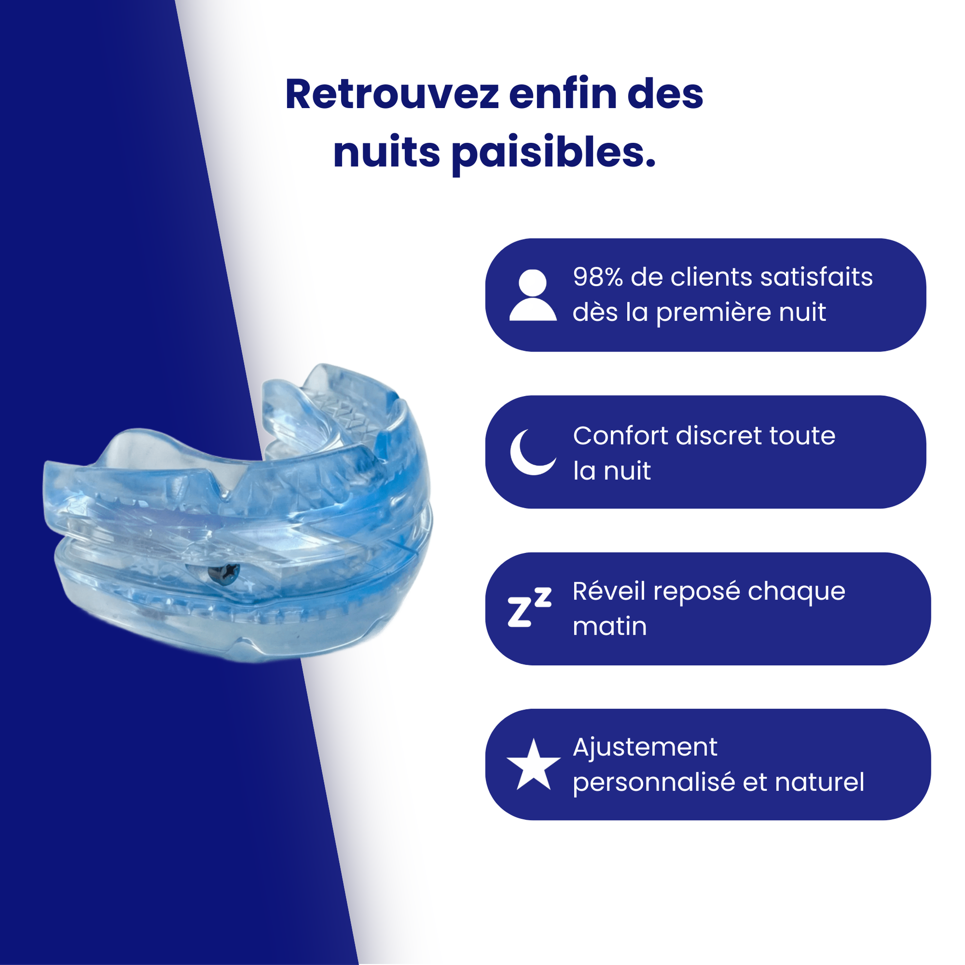 Il convient à la majorité des adultes souffrant de ronflements. En cas de doute ou de pathologie dentaire spécifique, demandez l’avis d’un professionnel de santé.
